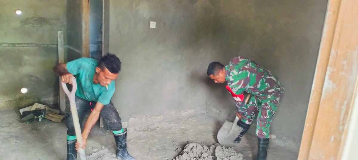 Sertu Johanis Loimiti, yang bertugas sebagai Babinsa di Desa Ewiri, terlibat aktif dalam proses renovasi rumah milik Bapak Andre Lesnussa. Kegiatan ini mencakup pengadukan campuran semen dan pasir, serta pemindahan material batako ke lokasi pembangunan. Kerja sama yang solid terjalin di lapangan antara Babinsa dengan pemilik rumah, Bapak Frengko Selsily selaku kepala tukang, dan Bapak Alter Lesnussa, menciptakan sinergi yang efektif untuk menyelesaikan pekerjaan secara efisien.