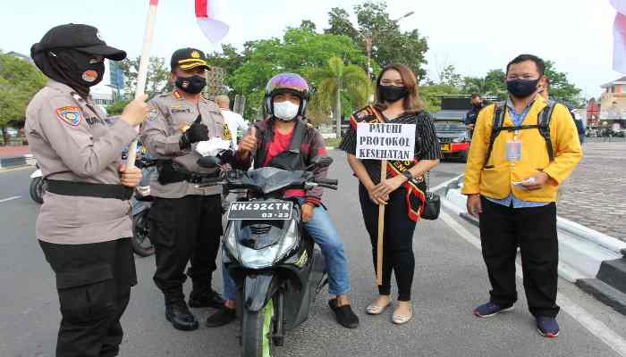 Kalteng Radar Tipikor.com – Seluruh lapisan masyarakat kini dihadapkan dengan Covid-19. Sebagai cara membangun zona zero Covid-19, Polda Kalteng melakukan pembagian 1000 masker gratis kepada masyarakat yang berlangsung di Bundaran Besar Kota Palangka Raya, Senin (31/08/2020) pagi.