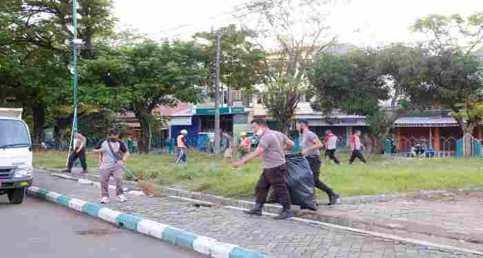 Bhakti Realigi, 200 Personil Polda Sulsel Bersihkan Halaman Mesjid Al Markaz
