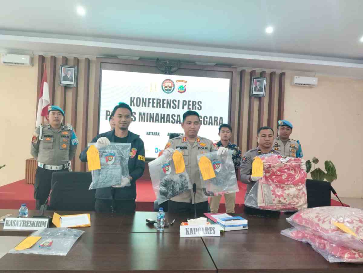MITRA, radartipikor.com– Kepolisian Resor (Polres) Minahasa Tenggara (Mitra) berhasil mengungkap kasus pembunuhan tragis yang menggemparkan warga Desa Ratatotok Dua, Kecamatan Ratatotok. Kabupaten Minahasa Tenggara. Seorang suami berinisial NM alias Noval (28), tega menganiaya istrinya sendiri, Azzahra Dolo Lantung (17), hingga meninggal dunia menggunakan sebilah pisau badik pada Senin 13/04/2026.
