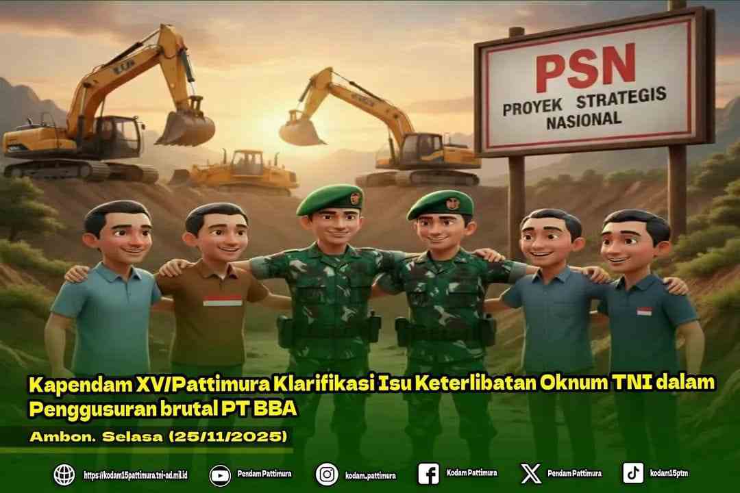 Ambon, Radartipikor.com -,Pemberitaan yang menyebutkan keterlibatan oknum TNI dalam mengawal PT.Batulicin Beton Asphal ( BBA ) yang melakukan penggusuran brutal terhadap tanah dan tanaman warga di pulau Kei Besar, Maluku. Kamis, (27/11/2025 ).