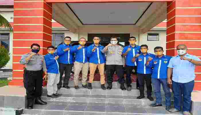 Ketua KNPI, Al Muhajir Miru. ditemani 6 rekan -rekan dari KNPI. Menyerahkan Masker Berlogo Salawaku Amrina logo POLDA MALUKU.dan Logo KNPI, dan Diterima lensung oleh Kapolres Pulau Buru. AKBP Rizky Purnama Kertapati S.I.K M,Si. dan di Damping Kasat intel, Iptu Sirilus Atajilam. Kasubag Humas polres pulau Buru, Ipda zulkifli Asril, di lobi Mapolres Pulau Buru.