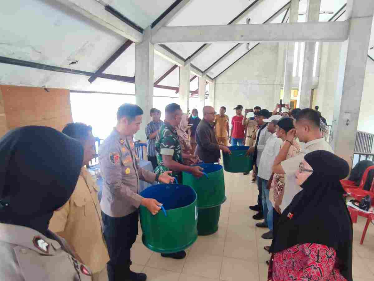 Mewakili Bupati Buru, Asisten II Serahkan 700 Tong Sampah Secara Simbolis kepada Warga Kota Namlea