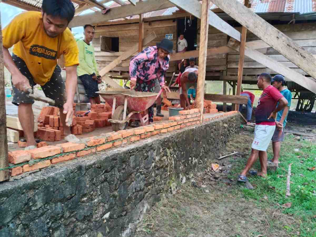 radartipikor.com- Bombana – Memasuki pekan kedua pelaksanaan TNI Manunggal Membangun Desa (TMMD) ke-124, personel Satgas TMMD Kodim 1431/Bombana bersama warga Desa Totole, Kecamatan Matausu, Kabupaten Bombana, Sulawesi Tenggara, melanjutkan pekerjaan pembangunan Rumah Tidak Layak Huni (RTLH) milik Ibu Tina dengan pemasangan batu bata, Rabu (14/5/2025). Sebelumnya, proses pemasangan atap telah rampung dikerjakan.