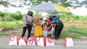“Makasih Pak Kapolda, bantuan sembako ini sangat membantu kami sekeluarga. Smoga bapak dan polisi semua diberikan kesehatan dan banyak rejeki,” kata salah satu ibu pedagang kaki lima.