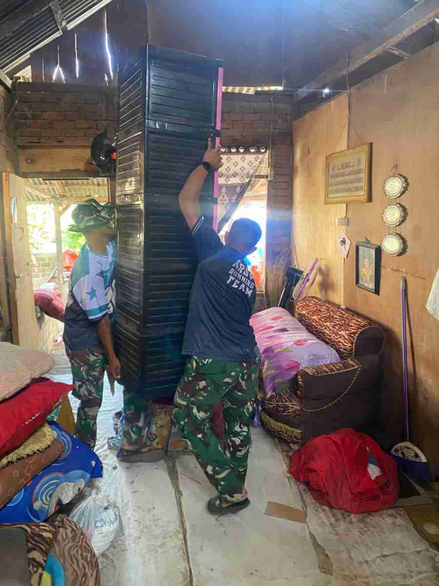 Sementara itu, di lokasi RTLH, suasana kekeluargaan tampak kental saat personel TNI membantu mengosongkan rumah milik Keluarga Bapak Harianto di Jaga 1, Desa Tababo. Prajurit bahu-membahu mengangkat barang-barang milik warga agar proses renovasi dapat segera dilaksanakan.