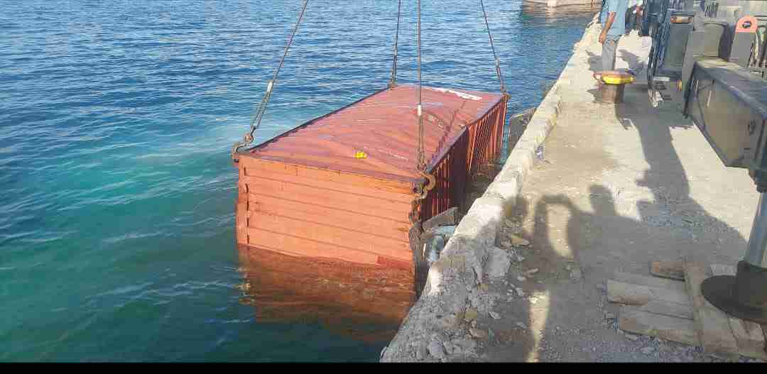 “Dengan susah payah dan bantuan kapal yang kebetulan ada di dermaga saat. alhamdulilah saat ini Kontainer yang jatuh sudah dapat di angkat dari dasar laut.dengan bantuan alat derek dari kapal yang berlabuh di dermaga,”ucapnya.